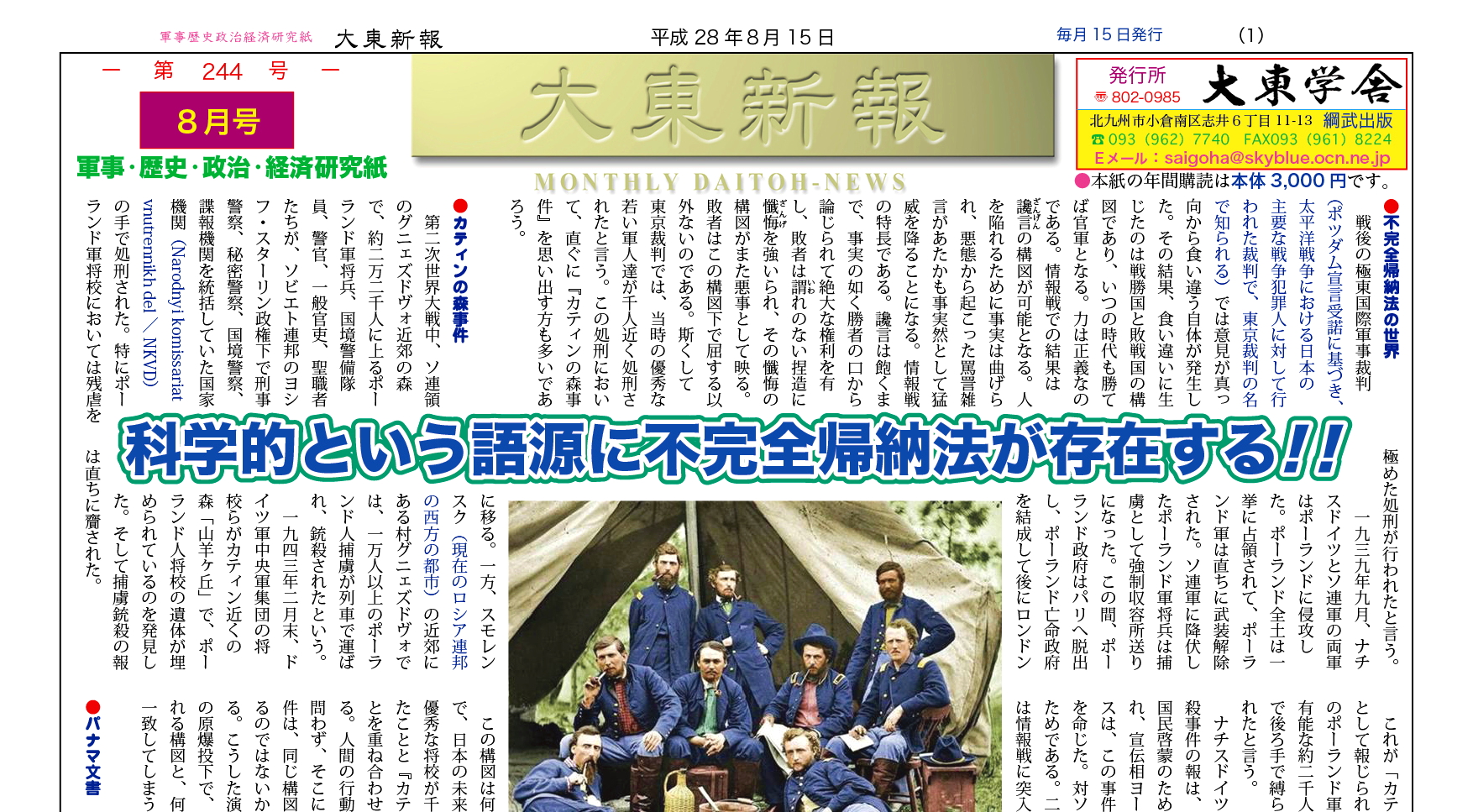 そのために、進歩的文化人がこじつけて尤もらしく言う「日本はアメリカの物量戦に負けた」という『家永三郎論』(【註】家永三郎/東大卒。東京教育大学教授。仏教思想史から出発し、近代思想史・法学史・太平洋戦争史など幅広い分野を研究した。また太平洋戦争史においては左翼的史観に固執し、大東亜戦争を岩波書店の『昭和史』グループと結託して亜流誘導や、朝日新聞の進歩的マスコミグループと結託して太平洋戦争史観を猖獗(しょうけつ)したことである。教科書検定違憲訴訟の原告としても知られる。一九一三〜二〇〇二)が定着してしまった。そして家永三郎論は徹頭徹尾、文化的進歩人的な立場で戦後の教育を牛耳り、これが日教組などに及び猖獗をもって「詐之術」の言い放題で捏造されたものであった。話術の妙と言うべきか。